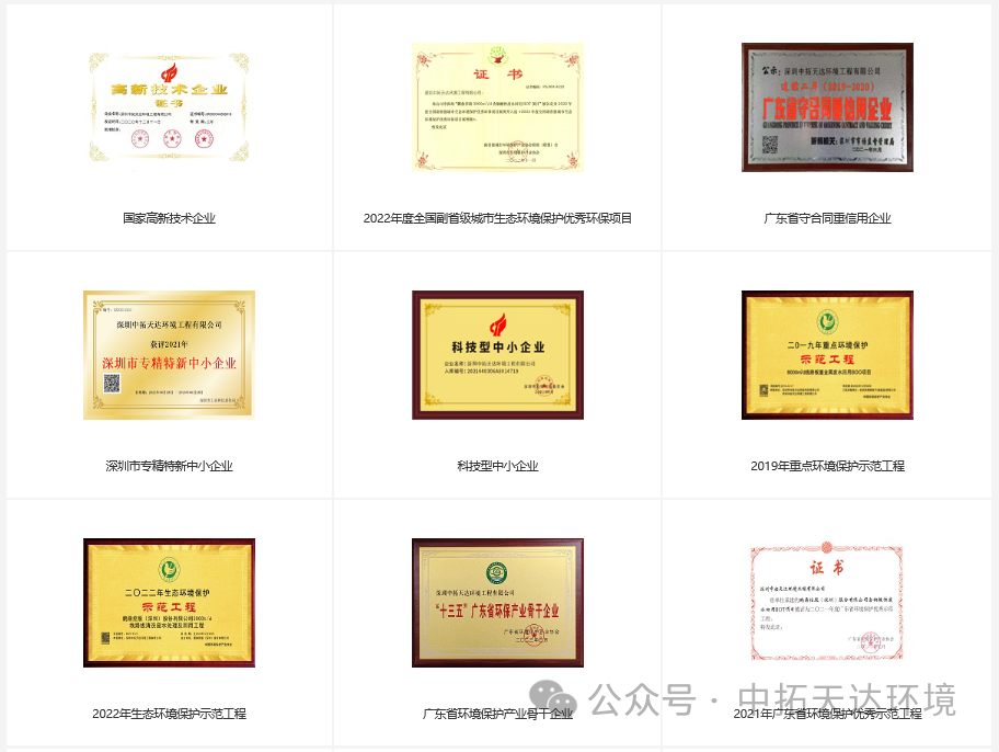 公司先后獲得發明專利4項,入選國家級重點環境保護示范工程2項、省環境保護優秀示范工程2項、2023年度全國副省級城市生態環境保護優秀環保項目案例、優秀產品/裝備2項、深圳市環境保護新技術2項,完成了50余個廢水回用與零排放項目,成為眾多行業龍頭企業的供應商。